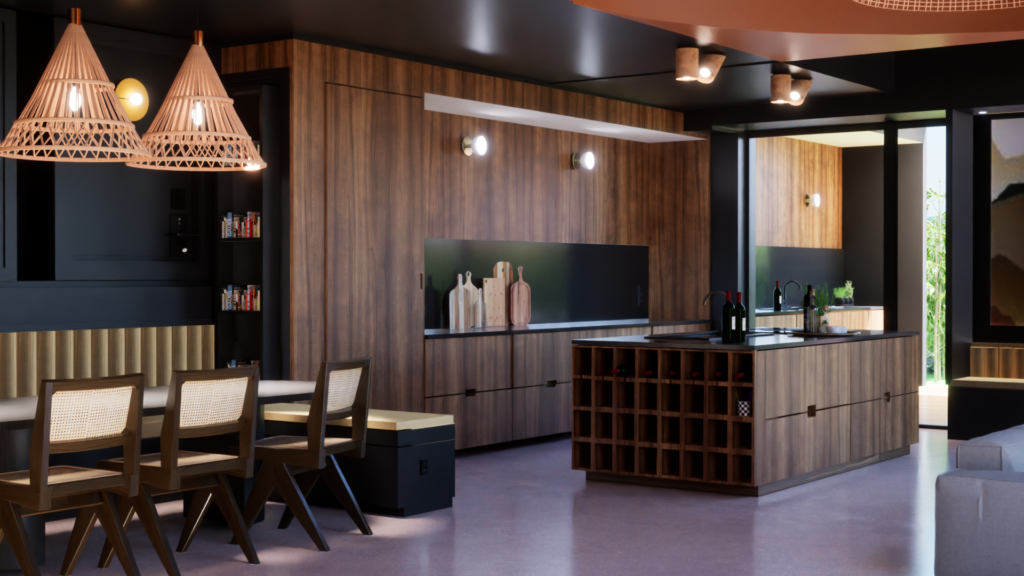 La cuisine a été créée sur mesure pour convenir parfaitement à la pièce de vie.